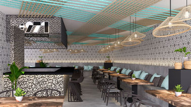 +971 is one of the restaurants for Ephemera, a creative F&B cluster of five unique restaurants in Westfield. The idea was to bring the UAE to Westfield with modern and understated Dubai authenticity. The design expresses this through the use of Arabic calligraphy and patterns into its walls and the space’s focal point, the +971 bar. The country’s heritage of being a fisherman’s village is realized through the thick twined cords that span the expanse of the ceiling and through the basket like features of the restaurant’s lighting.